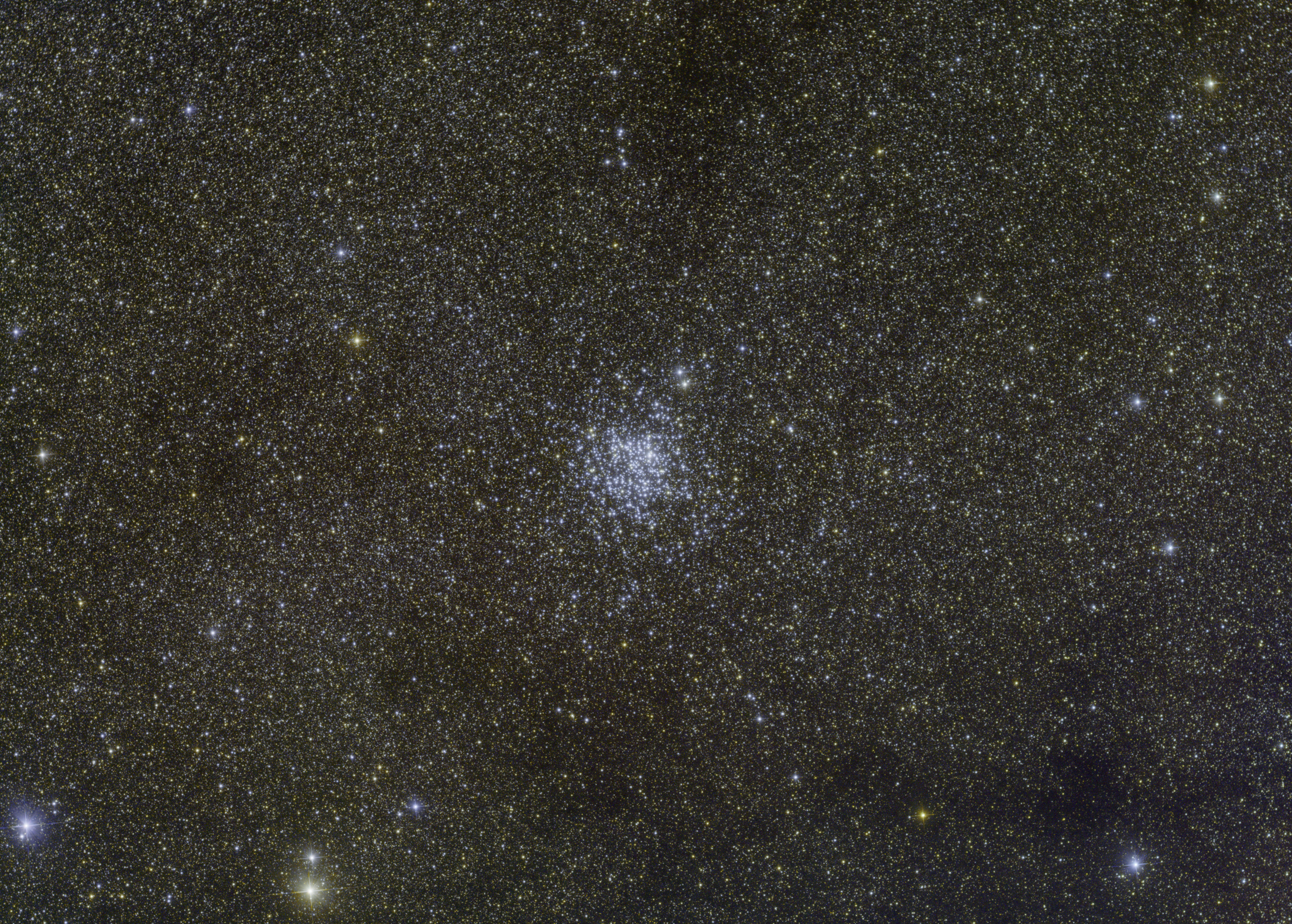 (Click to enlarge) This image © Copyright 2018, Michael Fulbright M11 quick look - about 45 minutes of RGB. Date: 07/13/2018 Telescope: Teleskop-Service ONTC 8" f4 Mount: Astro-Physics Mach1GTO Camera: ZWO ASI1600MM-Cool Exposure: Baader B 1.25" CCD Filter: 100x10" (gain: 76.00) -5C bin 1x1, Baader G 1.25" CCD Filter: 100x10" (gain: 76.00) -5C bin 1x1, Baader R 1.25" CCD Filter: 100x10" (gain: 76.00) -5C bin 1x1