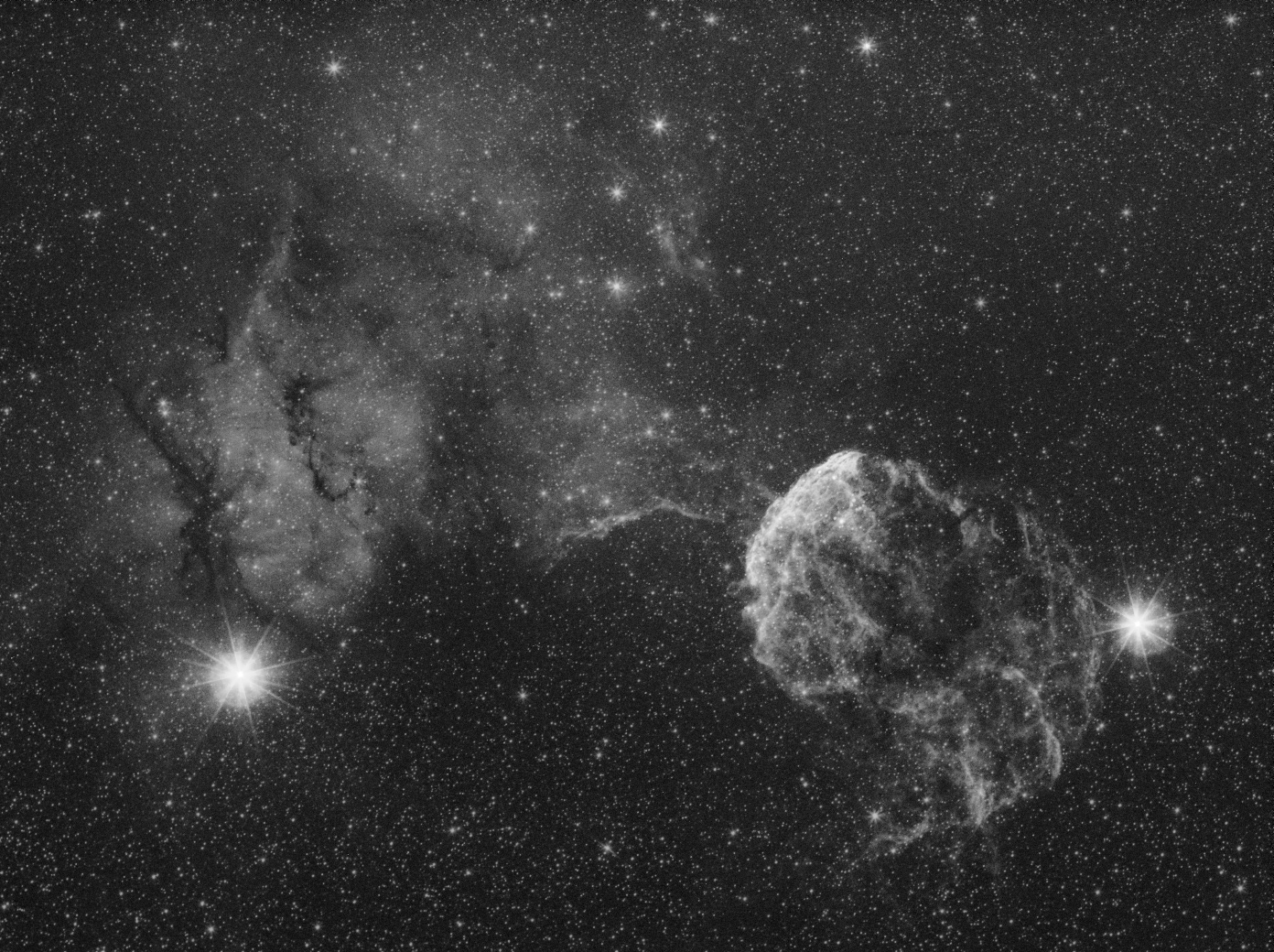 IC 443 Canon 200mm f/2.8 lens @ f/3.2 SXV-H9 camera and Astronomik Ha filter