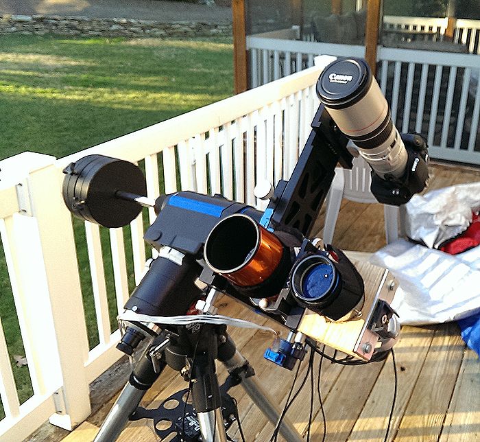 (Click to enlarge) This image © Copyright 2018, Michael Fulbright WO 66 + SXV-H9 and 50mm finder guider riding tandem with Canon T3i (unmodified) with Canon 400 f/5.6 L series lens to shoot simultaneous L and RGB. Date: 01/10/2015